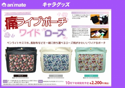 グッズ ポーチ ノンキャラオリジナル 痛ライブポーチワイド ローズ ホワイト アニメイト